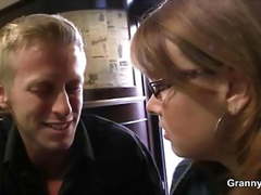 Blonde old women pleases an young guy